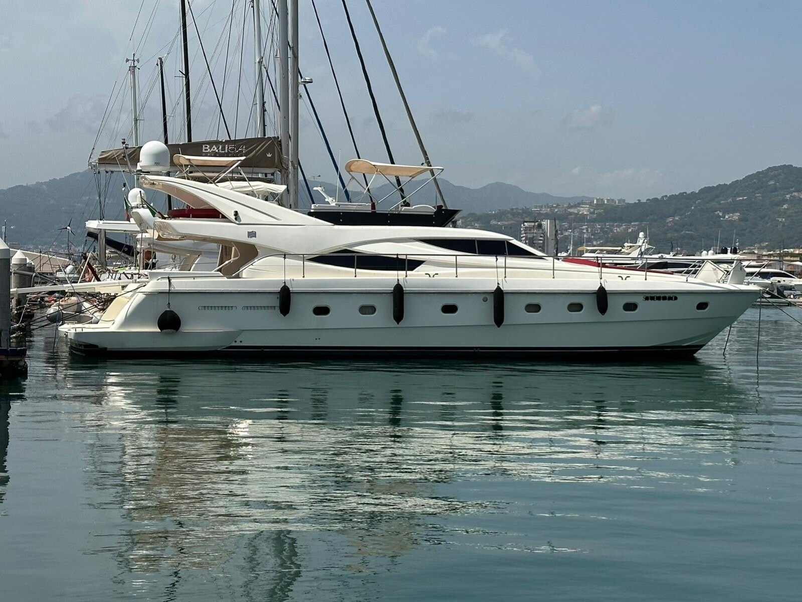 Tipologia: Flybridge di lusso, design italiano • Uso ideale: crociere familiari, charter, trasferimenti confortevoli • Comfort: ampi spazi esterni, flybridge attrezzato, dinette luminosa • Dotazioni: elettronica di navigazione, tender, impianti di bordo revisionati • Servizi: perizia pre‑acquisto, trasporto, finanziamento su richiesta.